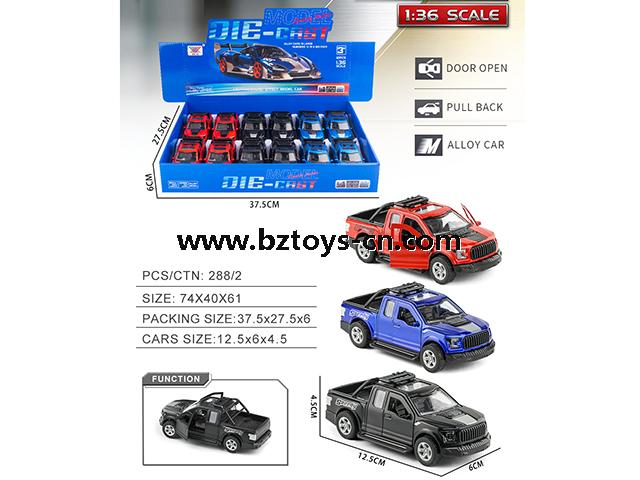 Description: 1:36 ALLOY PULL BACK CAR MIXED 3 COLORS (12PCS/BOX)