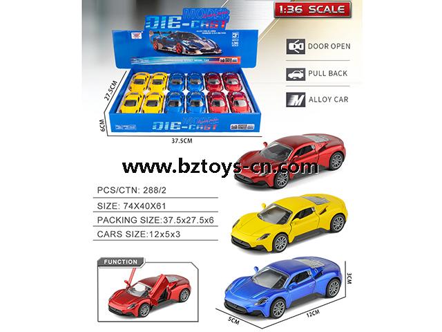 Description: 1:36 ALLOY PULL BACK CAR MIXED 3 COLORS (12PCS/BOX)