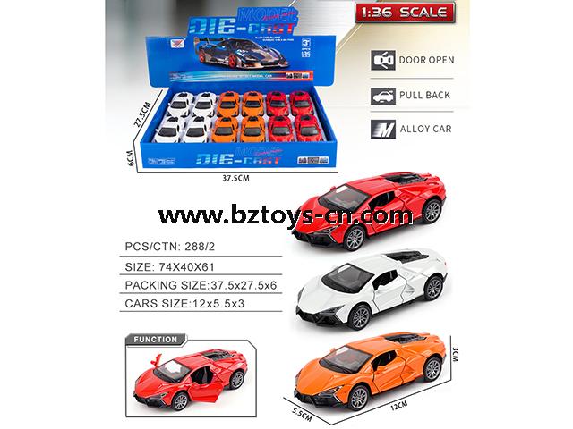 Description: 1:36 ALLOY PULL BACK CAR MIXED 3 COLORS (12PCS/BOX)