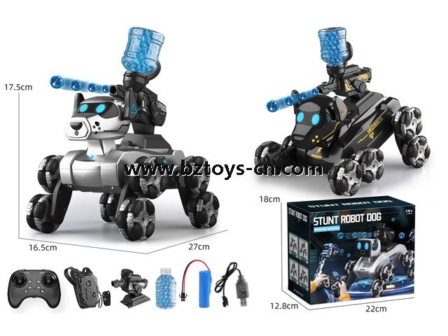 Description: R/C STUNT ROBOT DOG+WATER BOMB+DOUBLE REMOTE CONTROL+USB